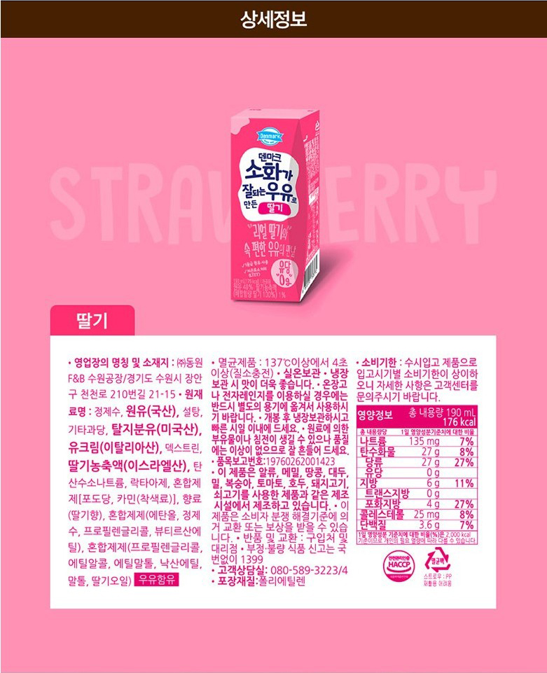 > 덴마크 소화가 잘되는 우유 딸기190mL 24팩